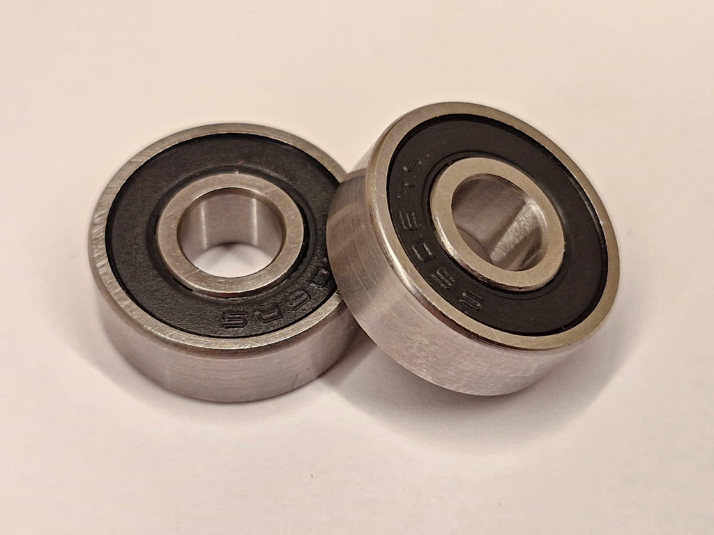 Two ball bearings are needed for a front wheel. There are also two ball bearings up in the chassis for the wheel's swivel function. Some models have bushings instead of ball bearings up in the chassis.