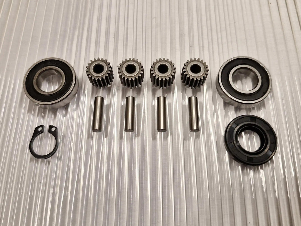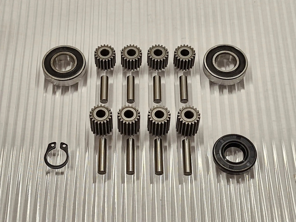 Repair kit for replacing the gears in Honda's Miimo HRM3000 and HRM4000 wheel motors that wear out as the original center gears are made of plastic. These worn out plastic gears are replaced by gears made of steel instead so that they do not break again.