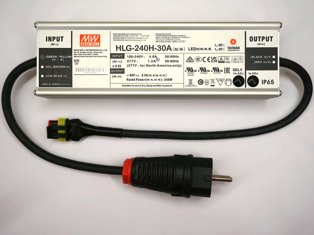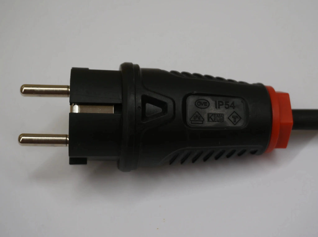 The transformer is IP65 rated, the plug is IP54 rated. The original transformer is rated IP44, which does not handle damp environments as well.