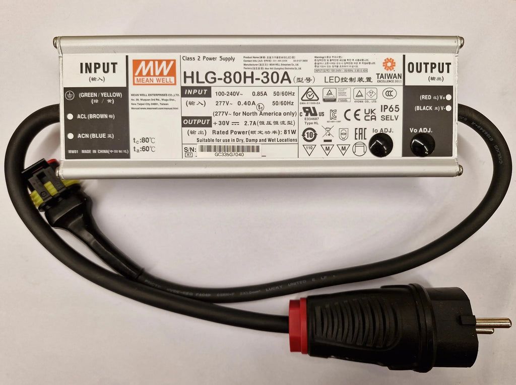 Muuntaja on IP65-luokiteltu ja pistoke IP54-luokiteltu. Alkuperäinen muuntaja on IP44-luokiteltu, mikä ei kestä myöskään kosteita olosuhteita.